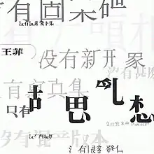 The album cover was unusual for its time: instead of any image of the singer's face, the main cover design shows overlapping phrases such as "no new images" and "no photo booklet" in Chinese characters of varying size, all of which have some strokes missing but allowing the phrase still to be discerned.[2][5] An alternative cover was all white except for the artist and album name, the latter in the same partial characters.