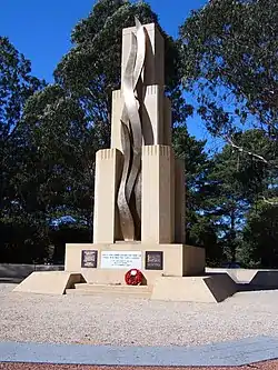 The memorial takes the form of an Obelisk. Surrounding walls portray the perimeter defences; the design recalls the area within which the siege took place; the coastline and harbour are at front, with the defence positions at the rear of the memorial. The eternal flame fabricated from bronze, sculpted and designed by the Melbourne artist Marc Clark (sculptor) and was installed in 1984.