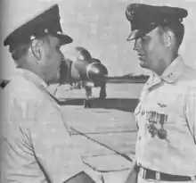 In 1945 he was assigned to the Far East Command as chief of the Redeployment Section, later becoming assistant chief of Air Staff for Supply. During his Far East Air Forces tour of duty he also served as deputy commanding officer, 13th Fighter Command; chief of staff, 85th Fighter Wing; and as commander, Fort William McKinley.
