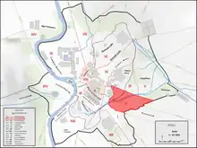 At the turn of the 5th century, the regio was divided into seven vici (districts) and 3,600 insulae (blocks). It had two curators and was served by 48 Roman magistrates.[2]