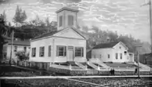 In 1836, French Canadian pioneers on the French Prairie in the Willamette Valley built a log cabin chapel along the Willamette River.[4] The first Protestant church in Oregon was built in Oregon City starting in 1842.[5] Completed in 1844, this Methodist church was also the first Protestant church on the continental West Coast of what became the United States.[5] The first Roman Catholic official presence in Oregon was the apostolic vicariate for the Oregon Territory begun in 1843. By 1846, the archdiocese of Oregon was formally established. Informally considered part of the Unchurched Belt, Oregon is known for historically having a lack of religiosity compared to other U.S. states.