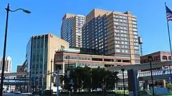 The Millender Center is a mixed-use complex in downtown Detroit, Michigan. The complex spans two city blocks, containing a retail atrium, Detroit People Mover station, and parking garage on its first seven floors, plus the 33-floor Renaissance City Club Apartments and a 20-floor Courtyard by Marriott hotel. Developed by Forest City Enterprises and completed in 1985, the Millender Center is now owned by General Motors, and integrated with GM's Renaissance Center complex across the street.