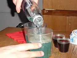 Rev when combined with Jägermeister makes a drink called a "Rev-Bomb", a variation of a Jägerbomb.[9] This drink is a "depth charge" or "bomb shot", which refers to cocktails that are made by dropping a shot glass filled with liquor into another drink.