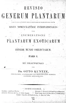 Revisio Generum Plantarum, also known by its standard botanical abbreviation Revis. Gen. Pl., is a botanic treatise by Otto Kuntze. It was published in three volumes; the first two of these appeared in 1891, and the third was published in two parts in 1893 and 1898.