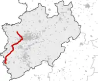 On 1 March 2008, the AVV published the Zukunftskonzept 2015 (future concept 2015), which envisaged the Rhein-Niers-Bahn (RB 33) being operated from both Duisburg and Mönchengladbach and Heinsberg to Aachen via Lindern. Thus, the Rhein-Niers-Bahn would take over operations on the Heinsberg–Lindern railway, with services to be operated by Euregiobahn under contract.[2] The final plans ultimately provided for portion working, in which two units of class 425 sets running from Aachen in double traction would be uncoupled.[3] This concept was finally implemented at the timetable change on 15 December 2013.