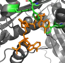 - ↑ Duh Y, Hsiao YY, Li CL, Huang JC, Yuan HS (December 2015). "Aromatic residues in RNase T stack with nucleobases to guide the sequence-specific recognition and cleavage of nucleic acids". Protein Science. 24 (12): 1934–41. doi:10.1002/pro.2800. PMC 4815224. PMID 26362012.