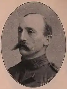 Chaloner was educated at Winchester College and the Royal Military College, Sandhurst, after which he was commissioned a second lieutenant in the 3rd Hussars on 30 January 1878. He served in the Second Anglo-Afghan War 1879–80, and was promoted to lieutenant on 1 July 1881. Promotion to captain came on 1 July 1887, followed by brevet appointments as major and lieutenant-colonel on 10 February 1894. He transferred to the Reserve of Officers, and became lieutenant-colonel in command of the 1st Wiltshire Volunteer Rifles.[1] Following the outbreak of the Second Boer War in October 1899, many volunteer officers were commissioned as part of the Imperial Yeomanry which was created in December 1899. Chaloner was appointed in command of the 1st (Wiltshire) Company of the 1st Battalion, and left Liverpool for South Africa on the SS Cymric in March 1900.[2]