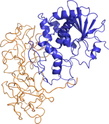 - 1 2 Weston SA, Tucker AD, Thatcher DR, Derbyshire DJ, Pauptit RA (December 1994). "X-ray structure of recombinant ricin A-chain at 1.8 A resolution". J. Mol. Biol. 244 (4): 410–422. doi:10.1006/jmbi.1994.1739. PMID 7990130.