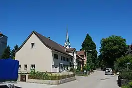 Rickenbach is first mentioned in 754 as Richinbach.[3] The Abbey of St. Gall acquired land in Rickenbach during the 8th century. Then, in 1471, the Abbey acquired the pledged bailiwick of Rickenbach from Balthasar von Hohenlandenberg. Between 1483 and 1798 the village was the center of the court of Rickenbach, which also included Wilen, and after 1506, Busswil. The court was administered from Wilen. and was managed by the Office Wiler. The village church was built in 838. It was administered by the Abbey of St. Gall. Though, between 1350 and 1422 it was a filial church of the church of Kirchberg. From 1529 until 1531 the parish switched temporarily to the Reformed faith. The present church of St. Verena, was established in 1644.