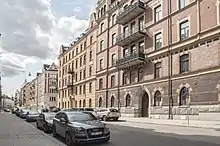 Riddargatan is a street in central Stockholm, the capital of Sweden. The Artillery and Engineering College was located at Riddargatan 13 from 1885 to 1926 and the Swedish Army Museum is now based in the same building.[1]