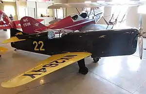 • 1936 National Air Races at Los Angeles - Pilot Dave Elmendorf placed third in the 580ci speed dash at 221.554 mph. The aircraft was painted yellow and named the "Elmendorf Special"
