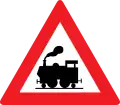 - ↑ Plate below danger sign reads one of either: German: Nebel, French: brouillard, Italian: nebbia