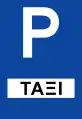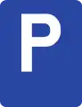 - ↑ The circular sign is used to indicate on-street parking, while the square-shaped sign indicates off-street parking.