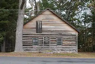 The meeting house has one story, measuring 30'-4" x 36'-5”, four bays by two bays. It is built of hewn logs, with chinking and corner boards. It has a rubble stone foundation, and a side-gable roof with wooden shingles. No chimneys are extant. Windows have six-over-six panes with batten shutters. The interior walls and ceiling are covered with wooden planks. Two rows of facing benches, where visiting ministers and senior members of the meeting would sit, are on a single raised tier. A simple set of stairs leading to the main doorway is the only exterior construction.