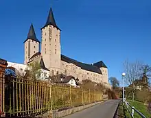 Rochlitz Castle or Rochlitz Palace (German: Schloss Rochlitz) lies in the west of the town of Rochlitz in the county of Mittelsachsen in the Free State of Saxony. It was built on the site of an imperial castle, erected in the second half of the 10th century, which fell into the possession of the Wettin margraves in 1143. Its appearance, which includes several Romanesque wings, is considerably influenced by its remodelling into a margravial schloss in the fourth quarter of the 14th century. Further conversions and additions followed at the end of the 15th and in the 16th centuries, when the castle became a secondary residenz, dower house and hunting lodge for the Wettin family. The castle or palace was the residence for members of the Saxon princely house eight times. From the 18th century the castle served as an administrative centre (justice department and district court); in 1852 it became a gaol, which necessitated considerable alteration. The museum founded in 1892 was gradually expanded and, today, takes up almost the entire castle.