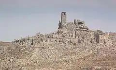 The old village is on a hilltop and was abandoned as a result of the Spanish Civil War. The new village is at the foot of the hill. The ruins of the old village have been preserved.