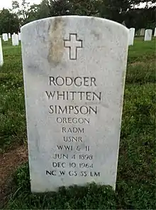 Rodger Whitten Simpson (June 4, 1898 – December 10, 1964) was a rear admiral of the United States Navy, who distinguished himself during World War II. The frigate USS Simpson (FFG-56) was named in his honor.