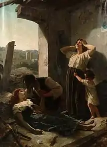 Among his works: Consolatrix afflictorum ; The Guardian Angel and Death of Raphael. In 1884 at Turin, he exhibited Episode after 1883 earthquake at Casamicciola and The Aurora of July 29, 1883. In 1887 at Venice, he displayed: Tre sorelle. He also made many portraits. He was made a knight of the Order of the Crown of Italy.[2]