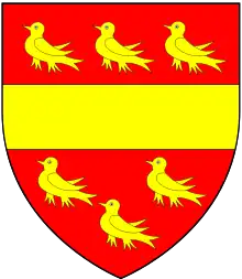 ![]() Arms of Beauchamp of Bletsoe: Gules, a fess between six martlets or | |