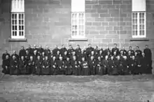 Clergy of the Diocese of Chatham in Caraquet in 1930 with bishop Patrice Alexandre Chiasson in the center