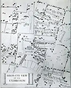Upon completion, a competition was held in the summer of 1911 to find the best building, an event that was witnessed by Raphael, Walters, McCurdy, and Sir Frederick Treves, among others.[23] A first prize of £250 and a gold medal was awarded to the winning architect and builder.[33] The judges, Guy Dawber, Henry Vaughan Lanchester and Mervyn Macartney, gave the best detached houses a Class I status, which would allow the property to be sold for £500. The best detached cottages were given a Class II status which allowed them to be marketed for £375.[17] Smaller prizes were given for best internal decoration, best town plan, best garden design, drawings, and excellence in craftsmanship and construction.[23] Admission to the public, and prospective buyers, was free.[34] A sales office was opened at 75 Main Road, opposite Balgores Lane, in 1913 to cope with purchase enquiries and viewings. The building was thought by Nikolaus Pevsner to have been originally built for the Japan–British Exhibition in White City, but was relocated to its current site.[35][n 4] Balgores House, which was built in the 1850s, since renamed to Gidea Park College, served as the exhibitions refreshments room.[37]