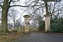 The Heskeths created Rufford Park around the hall, with a deer park, a ha-ha, and leisure gardens surrounded by a stone wall. Rufford Park extended from the boundary with Holmeswood to the boundary with Croston and Mawdesley. The area was divided by the Liverpool-Preston Turnpike Road (the A59 Liverpool Road). The development of the park resulted in cottages being demolished and their inhabitants relocated in the village. The park is screened by trees and contains an ice house, a rose garden, a restored ornamental garden, lake, and plantations. The southern part of the park is designated a Biological Heritage Site, and is home to bats, red squirrels and other species of animals, shrubs and rare fungi.[5][6]
