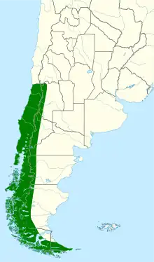 The rufous-legged owl is found in Chile from approximately Valparaíso Province and in far western Argentina from approximately Mendoza Province south to the tip of Tierra del Fuego. The one specimen of S. r. sanborni was taken on Chiloé Island off the coast of south-central Chile. The species primarily inhabits moist old-growth forest with a closed canopy and a dense understory. It is also found in older secondary forest and semi-open forest. In elevation it ranges from sea level to at least 2,000 m (6,600 ft).[4]