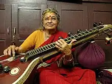 ![]() Smt. Rugmini Gopalakrishnan playing the Saraswati veena | |
