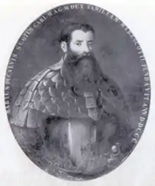 Bartolomeo Ruspoli was born in Florence in 1496. He formed a business partnerships with the Altoviti family, who were influential wool traders and bankers. In 1529 Bartolomeo travelled to Rome where he married Maria Ardinghelli niece of Cardinal Niccolò Ardinghelli, an influential member of the Farnese fraction and an intimate associate of Alessandro Farnese, future Pope Paul III. The Ruspoli were thus integrated into the Roman Curia and the papal court, and Bartolomeo's children, both sons and daughters, were all married into families of the Roman nobility: Muti, Cavalieri and Floridi.[2] In 1531 Bartolomeo Ruspoli was named Petitioner of the apostolic letters by Pope Clement VII. In 1535 he was made Prior of Florence.