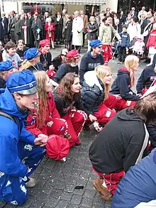Students in Denmark, Sweden, Iceland, and Finland wear white student caps, a tradition from the middle of the 18th century. These student caps are called studenterkørelse studenterhue (Danish) and Studentmössa (Swedish). Individuals also wear special colored (red, blue, black, green, orange, and pink) costumes. Since the old student exam in Sweden was abolished in 1969, the student celebrations there are now very reserved. In the past, for example, registered high school students were able to wear their white student cap all summer until they started studying in autumn. In recent years, the student celebrations in Sweden have experienced an upswing again. Today these are usually initiated with the so-called Mösspåtagning, a kind of "russ baptism".[12][13][14]