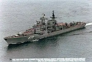 Gremyashchy was a Sovremenny-class destroyer of the Soviet and later Russian navy.[1] Previously her name was Veduschy, which was renamed shortly before commissioning.
