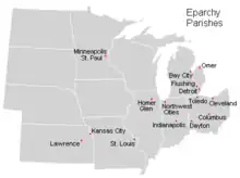 The Eparchy of Parma (Latin: Eparchia Parmensis Ruthenorum) is an eparchy (diocese) of the Ruthenian Greek Catholic Church in the midwestern part of the United States. Its episcopal seat is the Cathedral of St. John the Baptist in Parma, Ohio. As an Eastern Catholic Church, it uses the Byzantine Rite in its services.