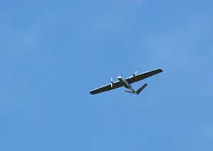SKNL PRz PR-5 Wiewiór plus[1] is a Polish unmanned aerial vehicle (UAV) being developed by students of Rzeszów University of Technology (Polish: Studenckie Koło Naukowe Lotników, Politechnika Rzeszowska, SKNL PRz), beginning in January 2006. Fifth of the series, following PR-1 Szpion, PR-2 Gacek, PR-3, PR-4 (SAE lifter) and PR-5 Wiewiór, it is an experimental reconnaissance aircraft. It has carbon fiber and kevlar monocoque structure with aluminium ferrules. Power plants are two electric brushless three-phase motors.