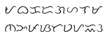 The abakada in Baybayin, a native script of the Tagalog language. This script is perhaps alluded to by the author in the last stanza of the poem.
