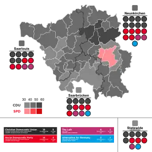 All 51 seats in the Landtag of Saarland 26 seats needed for a majority | |||||||||||||||||||||||||||||||||||||||||||||||||||||||||||||||||