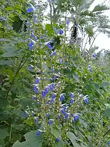 Salvia longispicata is a perennial shrub native to southwestern Mexico, growing between 1,000 and 6,500 feet (300 and 2,000 m) elevation. The specific epithet "longispicata" gives the impression that the plant has "long spikes", but instead refers to the many projecting clusters of short flowering spikes that resemble small ears of corn.[2]