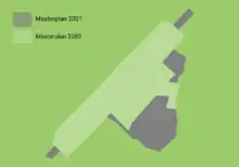 The airport authority also plans to build a new passenger terminal (completion 2023), with an area measuring 120,000 square metres (1,300,000 sq ft).[43] Additional cargo terminal, 133,895-square-metre (1,441,230 sq ft) cargo facilities and 68,000-square-metre (730,000 sq ft) aircraft maintenance facilities will be built as well.[40] The project began in 2020, cost US$22.7 million and expected to be completed in 2023.[44][45][46]