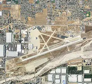 On 1 March 1942, the airport was renamed San Bernardino Army Air Field and the San Bernardino Air Depot was established there. The first aircraft arrived at the new base on 2 June 1942. The base was under the administration of the Fourth Air Service Area Command.[5] All runways were completed by December and night flying was initiated in March 1943. Requests to establish commercial air service by Western Air Lines in mid-late 1942[6] were refused.