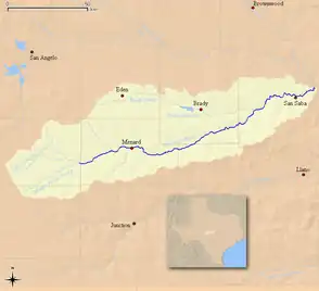 A major tributary is Brady Creek, which is 90 miles long and parallels the path of the San Saba to the north.[1]