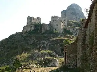 Known until 1861 as San Severino di Camerota, the village was founded in the 10th-11th century. The original settlement, located upon a hill, was gradually abandoned during the end of the 19th century after the construction of a railway line. New houses were built in the valley, just below the hill but closer to the railway.[3] Nowadays the ancient village is a ghost town and a preserved heritage, because of the conservation status of its medieval structure.[4][5]