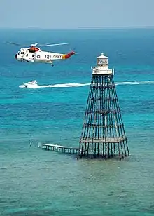 Sand Key Light is a lighthouse 6 nautical miles (11 km; 6.9 mi) southwest of Key West, Florida, between Sand Key Channel and Rock Key Channel, two of the channels into Key West, on a reef intermittently covered by sand.[2][3][4] At times the key has been substantial enough to have trees, and in 1900 nine to twelve thousand terns nested on the island. At other times the island has been washed away completely.[5]