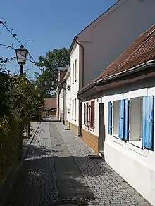 - Seamen's houses in the Matrosengasse: The Brandenburger Weiher was drained in 1775 and an industrial area was built on its former site.[36] The north retaining wall of the lake was not removed until the late 1970s, and the Weiherstraße has been there ever since.