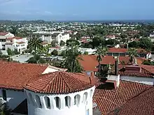 ![]() Santa Barbara County Courthouse, exterior view from the clock tower, showing the Sunken Garden | |