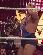On the March 5 Raw, Marella defeated Jack Swagger to win the United States Championship. On the following episode of SmackDown, Marella successfully defended the title against Swagger in a steel cage match, by escaping through the cage door.[69] At WrestleMania XXVIII on April 1, Marella was the team captain of Team Teddy, which lost to Team Johnny, after interference from Eve.[70] The following night on Raw, Marella successfully defended the title against Swagger and Dolph Ziggler in a Triple Threat Match,[71] and against David Otunga on the April 16 episode.[72] In the pre-show of Extreme Rules on April 23, Marella defeated The Miz to retain the United States Championship.[73] The following night on Raw, Marella unsuccessfully tried to earn a WWE Championship match at Over the Limit in a Beat the Clock Challenge against The Miz.[74] Later that month, Marella briefly reunited with Zack Ryder, facing teams including Primo and Epico, Curt Hawkins and Tyler Reks and Titus O'Neil and Darren Young.[75][76][77] Marella then feuded with Alberto Del Rio's ring announcer Ricardo Rodriguez,[78][79][80] leading to a non-title Tuxedo match on June 17 at No Way Out, which Marella won.[81] On the June 25 Raw, Marella successfully defended the United States Championship against Jack Swagger.[82] Four days later on SmackDown, he and Intercontinental Champion Christian defeated David Otunga and Cody Rhodes to qualify for the World Heavyweight Championship Money in the Bank ladder match at Money in the Bank,[83] which was won by Dolph Ziggler.[84] On the July 27 and August 3 episodes of SmackDown, Marella lost to Antonio Cesaro in non-title matches.[85][86] On August 19, on the SummerSlam pre-show, Marella lost the United States Championship to Cesaro.[87] Marella lost his rematch for the title on the September 3 episode of Raw.[88] On the September 21 episode of SmackDown, Marella defeated Cesaro in a non-title match to earn another shot at the United States Championship.[89] The title rematch took place the following week on SmackDown, where Marella failed in his title challenge.[90]