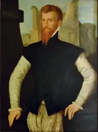 Sarah Capel-Coningsby, Countess of Essex (née Bazett; 11 July 1759[1] – 16 January 1838)[2] was an English amateur artist. She specialised in making watercolour copies of old portraits of 16th century personages and other paintings,[3] and her surviving copies in many instances are the only evidence of the now lost originals.[4] Over a hundred of her portraits in watercolour and gouache on paper were published in the 1825 edition of Lucy Aikin's Memoirs of the Court of Queen Elizabeth, first published in 1818 as a two-volume work and re-issued in several editions (4th edition 1819, further edition 1823). The fact that she frequently added the subject's coat of arms and other heraldic devices to her copy portraits suggests that she was knowledgeable in the field of heraldry.