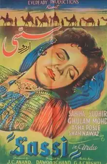 Sassi is a 1954 Pakistani romance film directed by Dawood Chand and produced by J.C. Anand under banner Eveready Pictures. It was a remake of the director's own Sassi Punnu (1939) which was based on the legend of the same name. Sabiha played the titular role in the film opposite Sudhir, while Asha Posley, Nazar and Ghulam Mohammad were in pivotal roles. The musical socre of the film was composed by G. A. Chishti. Sassi was a commercially successful film, and is recognised as the first golden jubilee hit film of the Pakistani cinema.