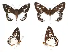 - ↑ Chiba, H. & H. Tsukiyama (1989): Revisional notes on the Genus Satarupa Moore. 1. New synonyms of Satarupa monbeigi Oberthür. J. Res. Lepid. 27 (2): 135-143.