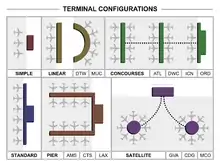 Hybrid layouts also exist. San Francisco International Airport and Melbourne Airport use a hybrid pier-semicircular layout and a pier layout for the rest.