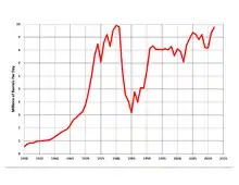 After the then U.S. president George W. Bush asked the Saudis to raise production on a visit to Saudi Arabia in January 2008 and they declined, Bush questioned whether they had the ability to raise production any more.[13] In the summer of 2008, Saudi Arabia announced an increase in planned production of 500,000 barrels per day.[14] However, in 2008, some experts believed that Saudi oil production had already peaked or would do so in the near future.[15] In April 2015, the Saudi oil minister Ali Al-Naimi said that Saudi Arabia produced 12 million barrels per day in March that year, which was the highest figure based on records since the early 1980s. The previous peak was in August 2013 at 10.2 million barrels per day.[16]