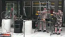 SAH tends to fit into industrial music, both in the literal sense, as they use industrial hardware, and in the figurative sense. Japanese Taiko drumming with its big arm movements and disciplined musical tightness is a major inspiration. Another influence is modern minimalist music, with frequent exploration of mathematical rhythm generating ideas.